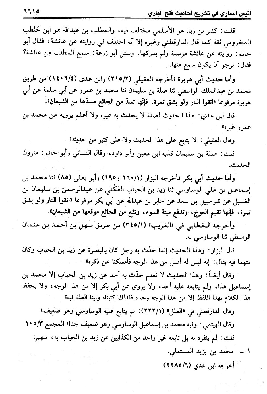 وأما حديث أبي بكر فأخرجه البزار (1/ 160 و195) وأبو يعلى (85) ثنا محمد بن إسماعيل بن علي الوساوسي ثنا زيد بن الحباب العُكْلي عن عبد الرحمن بن سليمان بن الغسيل عن شرحبيل بن سعد عن جابر بن عبد الله عن أبي بكر مرفوعًا "اتقوا النار ولو بشق تمرة، فإها تقيم العوج، وتدفع ميتة السوء، وتقع من الجائع موقعها من الشبعان".