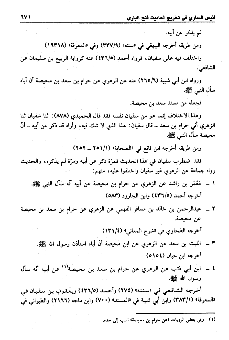 (¬1) وفي بعض الرويات "عن حرام بن محيصة" نسب إلى جده.