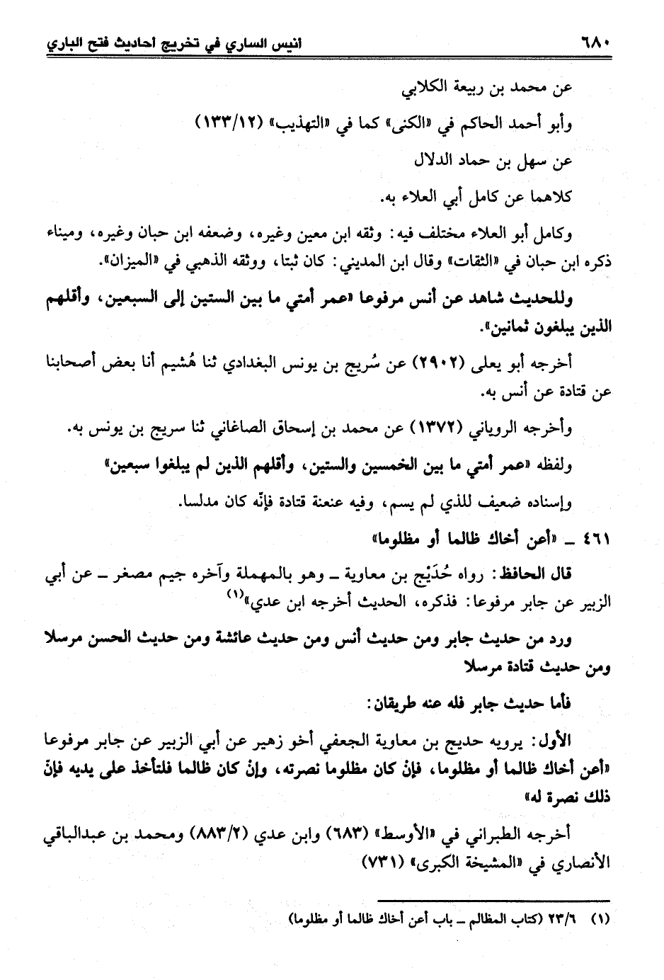 (¬1) 6/ 23 (كتاب المظالم - باب أعن أخاك ظالما أو مظلوما)