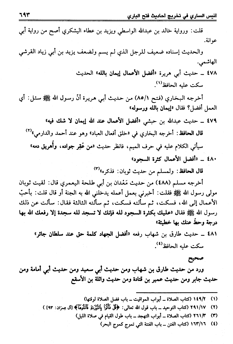479 - حديث عبد الله بن حبشي "أفضل الأعمال عند الله إيمان لا شك فيه"