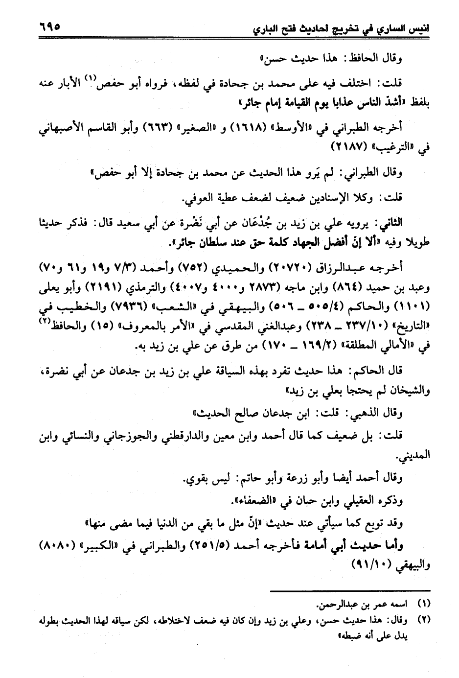 الثاني: يرويه علي بن زيد بن جُدْعَان عن أبي نَضْرة عن أبي سعيد قال: فذكر حديثا طويلا وفيه "ألا إنّ أفضل الجهاد كلمة حق عند سلطان جائر".