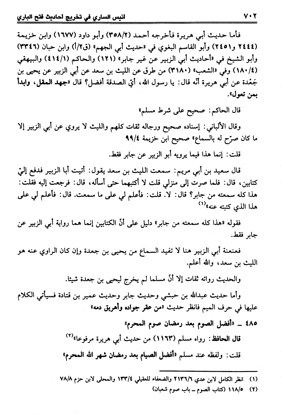 وقال الألباني: إسناده صحيح ورجاله ثقات كلهم والليث لا يروي عن أبي الزبير إلا ما كان صرّح له بالسماع" صحيح ابن خزيمة 4/ 99