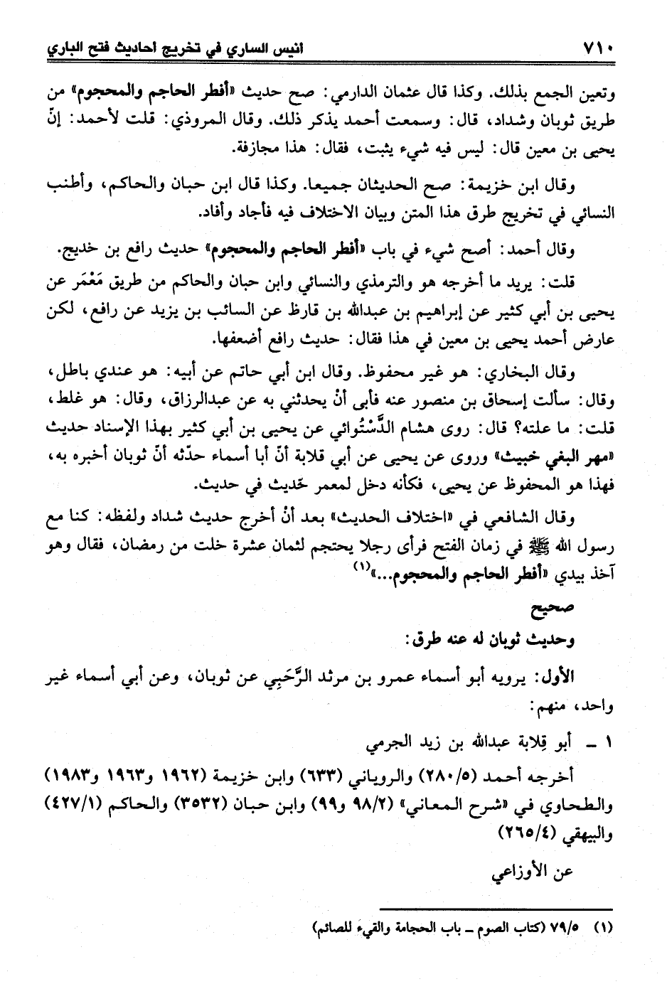 (¬1) 5/ 79 (كتاب الصوم - باب الحجامة والقيء للصائم)