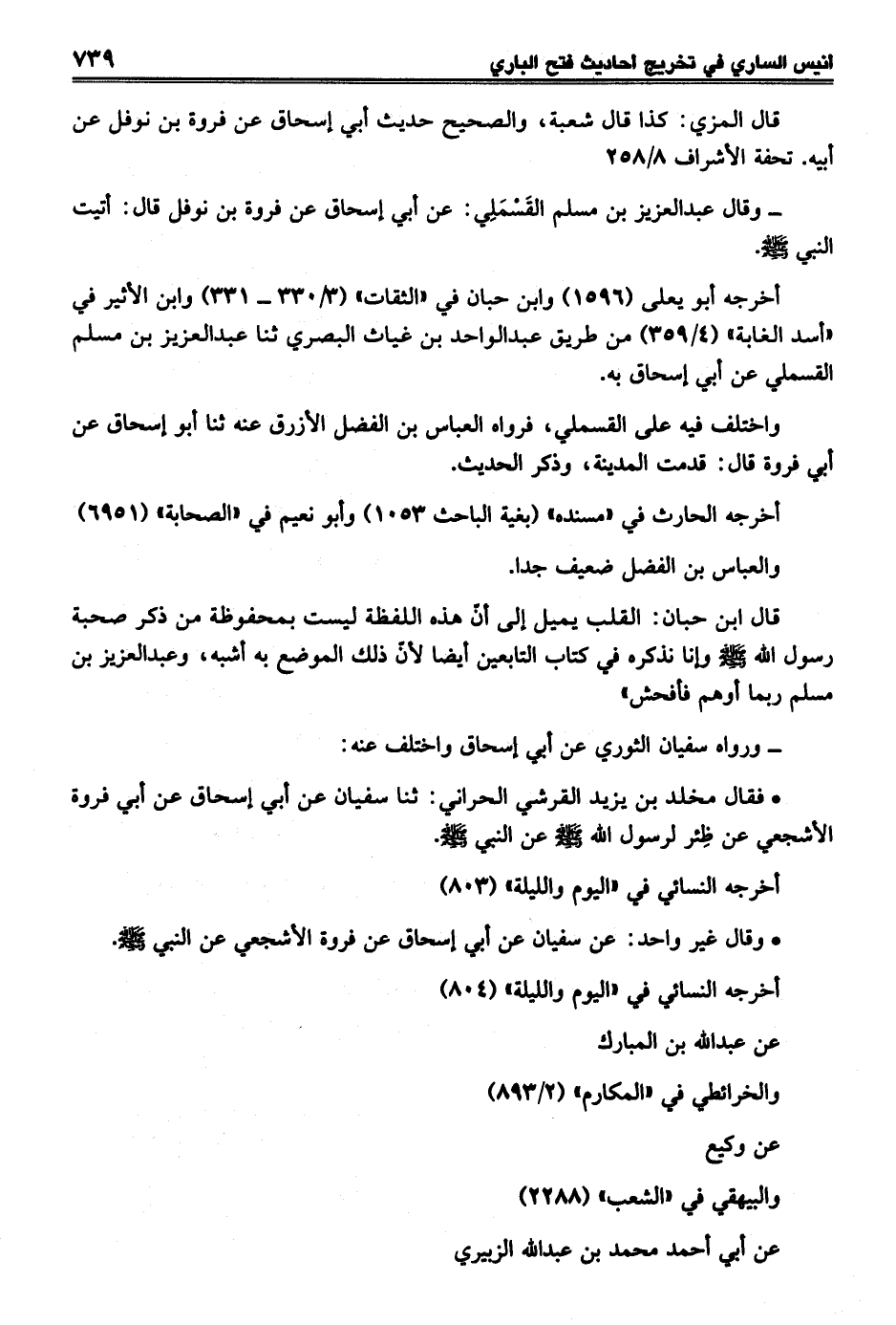 - وقال عبد العزيز بن مسلم القَسْمَلِي: عن أبي إسحاق عن فروة بن نوفل قال: أتيت النبي - صلى الله عليه وسلم -.