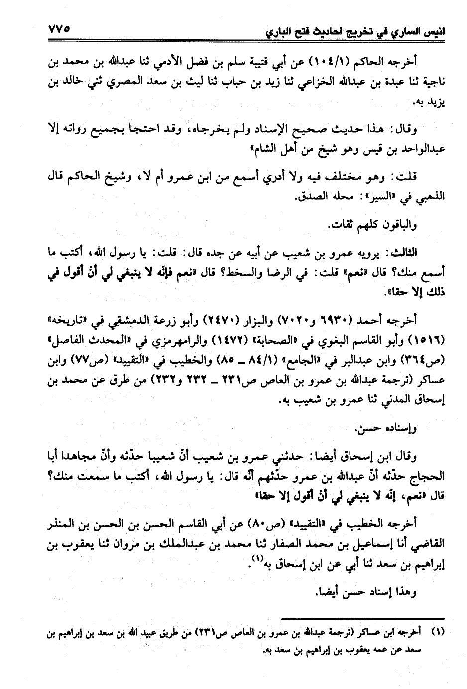 (¬1) أخرجه ابن عساكر (ترجمة عبد الله بن عمرو بن العاص ص 231) من طريق عبيد الله بن سعد بن إبراهيم بن سعد عن عمه يعقوب بن إبراهيم بن سعد به.