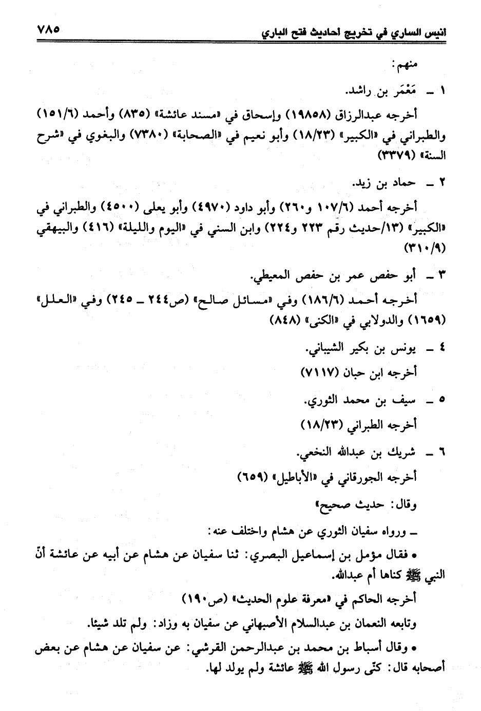 • فقال مؤمل بن إسماعيل البصري: ثنا سفيان عن هشام عن أبيه عن عائشة أنّ النبي - صلى الله عليه وسلم - كناها أم عبد الله.