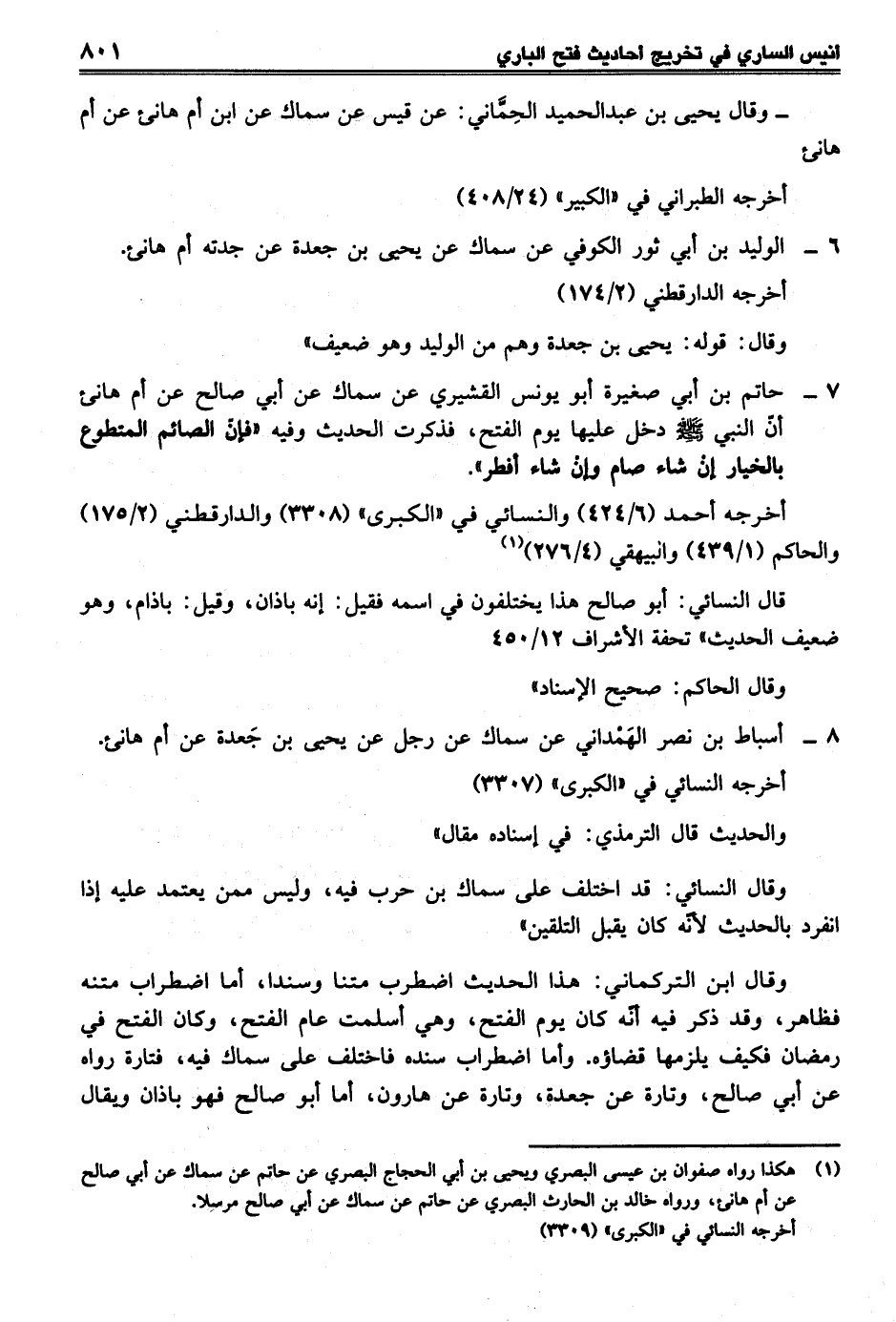 (¬1) هكذا رواه صفوان بن عيسى البصري ويحيى بن أبي الحجاج البصري عن حاتم عن سماك عن أبي صالح عن أم هانئ, ورواه خالد بن الحارث البصري عن حاتم عن سماك عن أبي صالح مرسلاً.