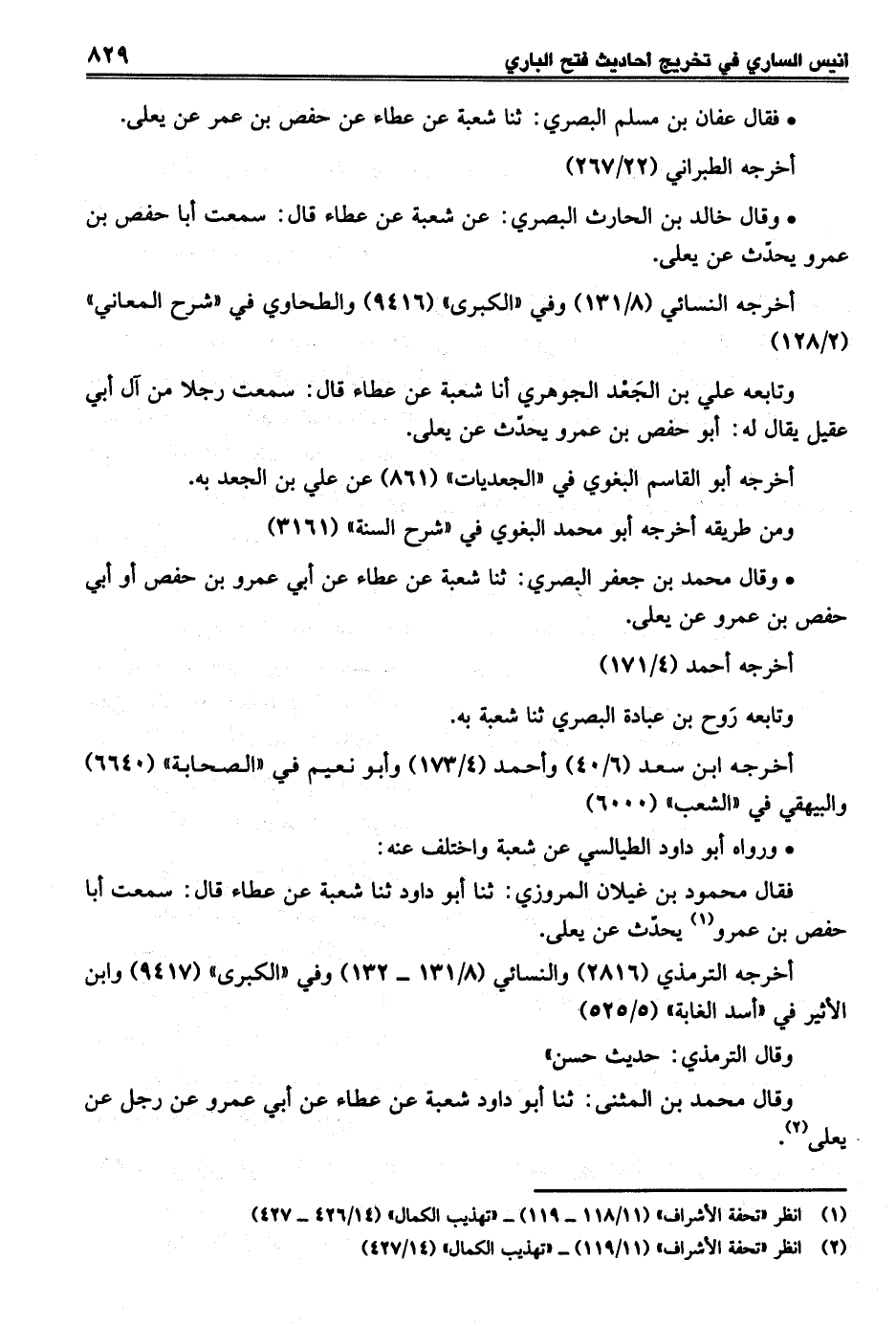 • فقال عفان بن مسلم البصري: ثنا شعبة عن عطاء عن حفص بن عمر عن يعلى.