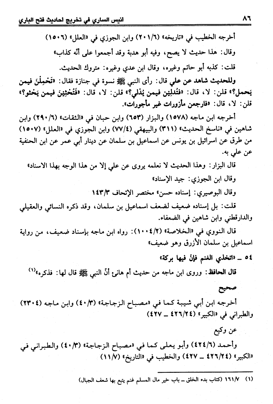 كتاب أنيس الساري (تخريج أحاديث فتح الباري) (اسم الجزء: 1)