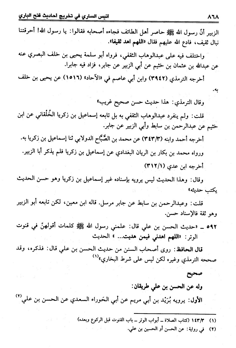 592 - "حديث الحسن بن علي قال: علمني رسول الله - صلى الله عليه وسلم - كلمات أقولهنّ في قنوت الوتر: "اللهم اهدني فيمن هديت ... " الحديث