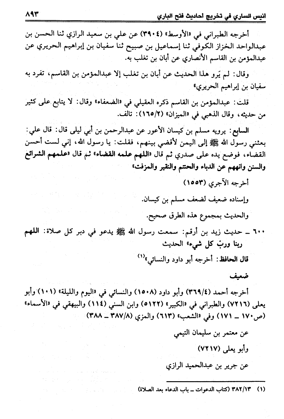 600 - حديث زيد بن أرقم: سمعت رسول الله - صلى الله عليه وسلم - يدعو في دبر كل صلاة: اللهم ربنا وربّ كل شيء" الحديث