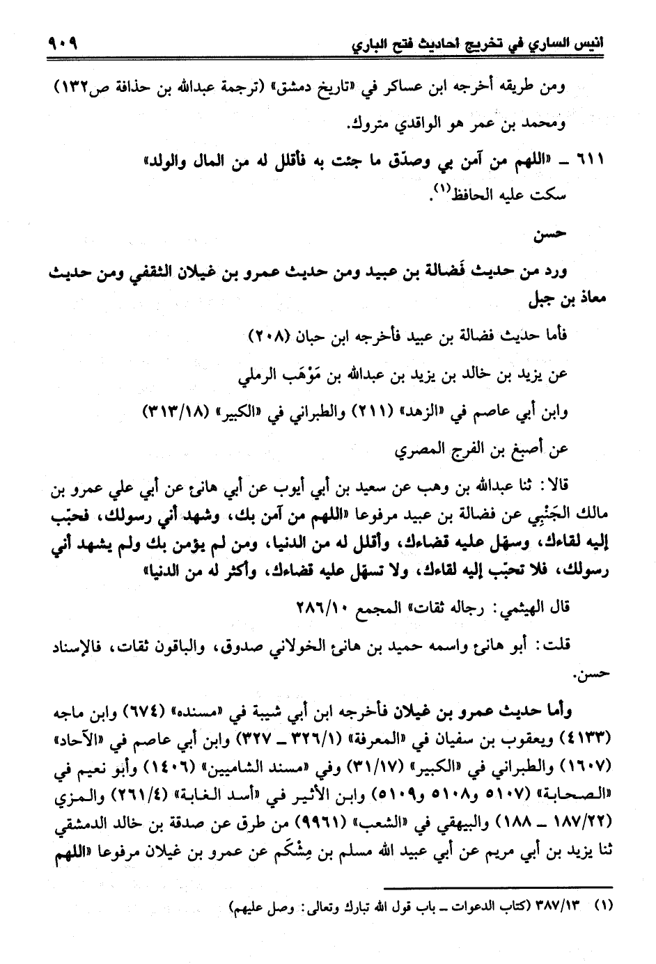 611 - "اللهم من آمن بي وصدّق ما جئت به فأقلل له من المال والولد"