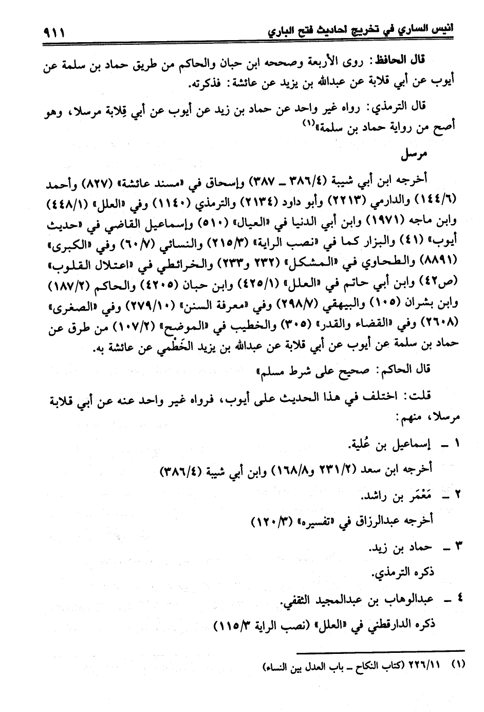 (¬1) 11/ 226 (كتاب النكاح - باب العدل بين النساء)
