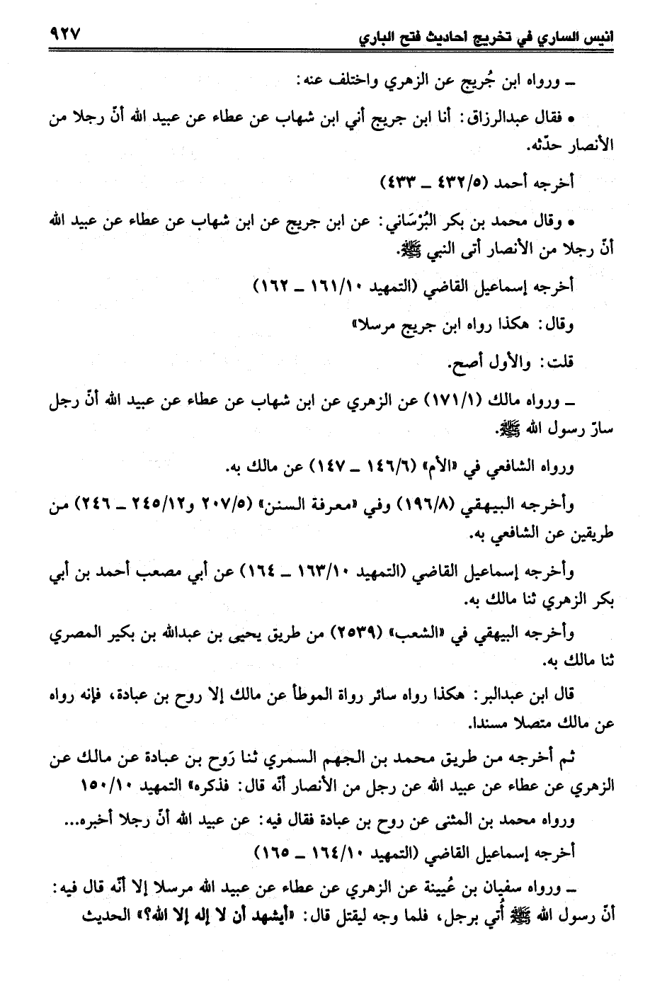 ثم أخرجه من طريق محمَّد بن الجهم السمري ثنا رَوح بن عبادة عن مالك عن الزهري عن عطاء عن عبيد الله عن رجل من الأنصار أنه قال: فذكره" التمهيد 10/ 150