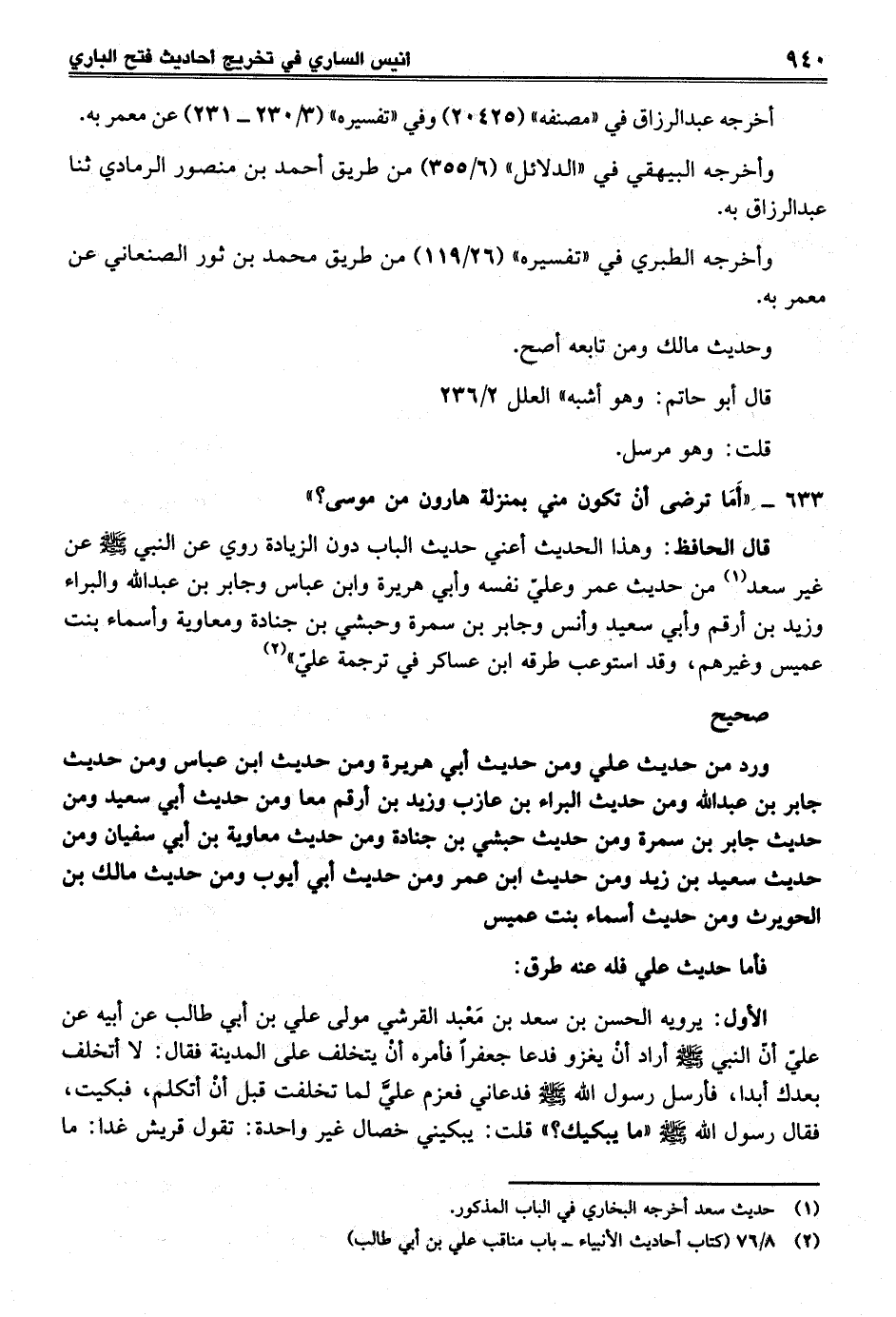 633 - "أَمَا ترضى أن تكون مني بمنزلة هارون من موسى؟ "