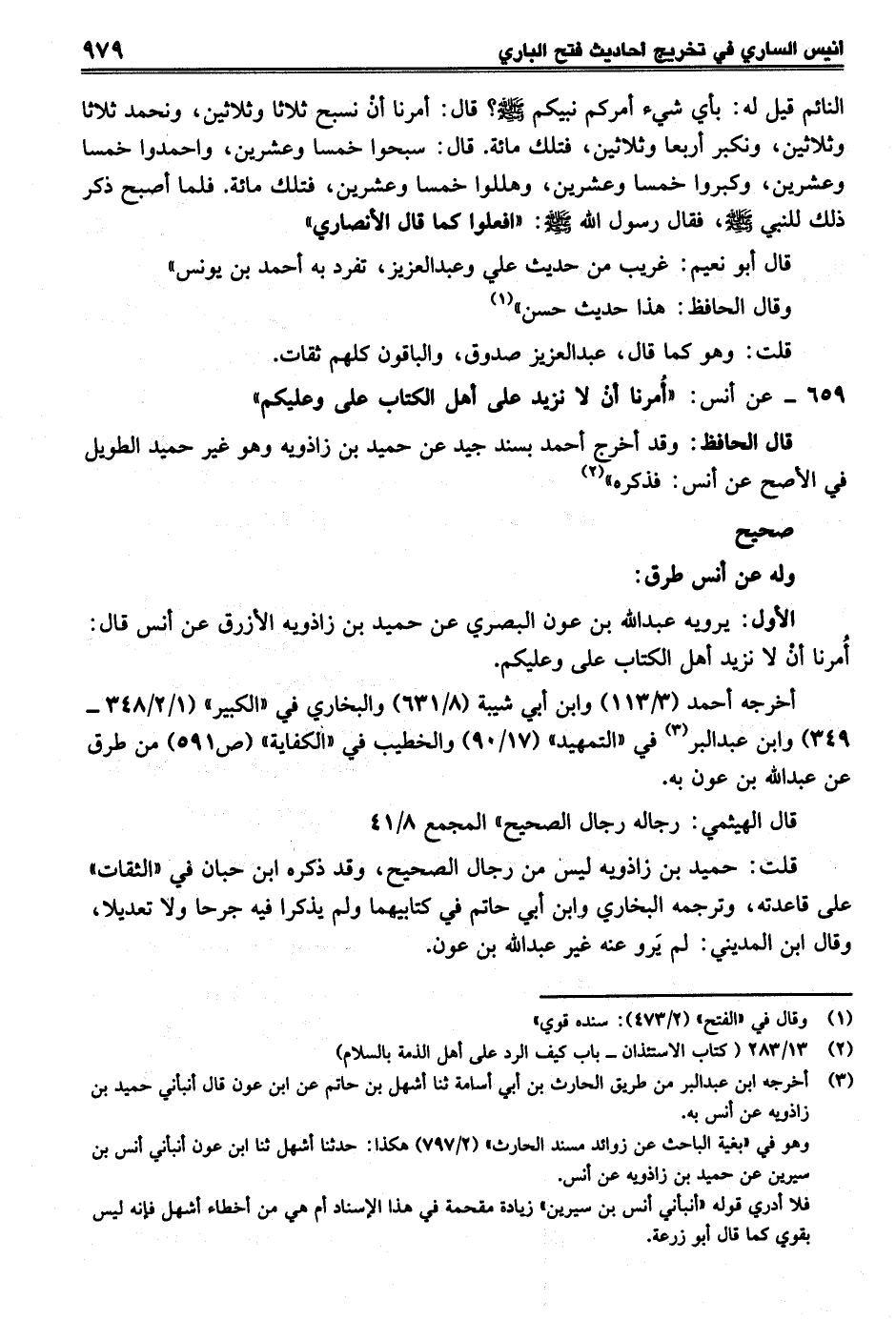659 - عن أنس: "أُمرنا أنْ لا نزيد على أهل الكتاب على وعليكم"