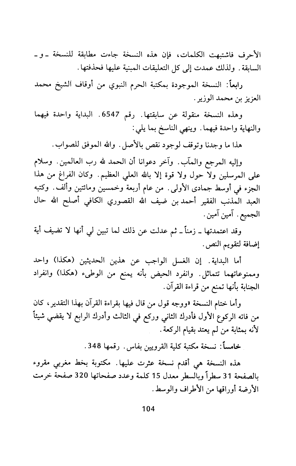 الأحرف فاشتبهت الكلمات، فإن هذه النسخة جاءت مطابقة للنسخة -و- السابقة. ولذلك عمدت إلى كل التعليقات المبنية عليها فحذفتها.