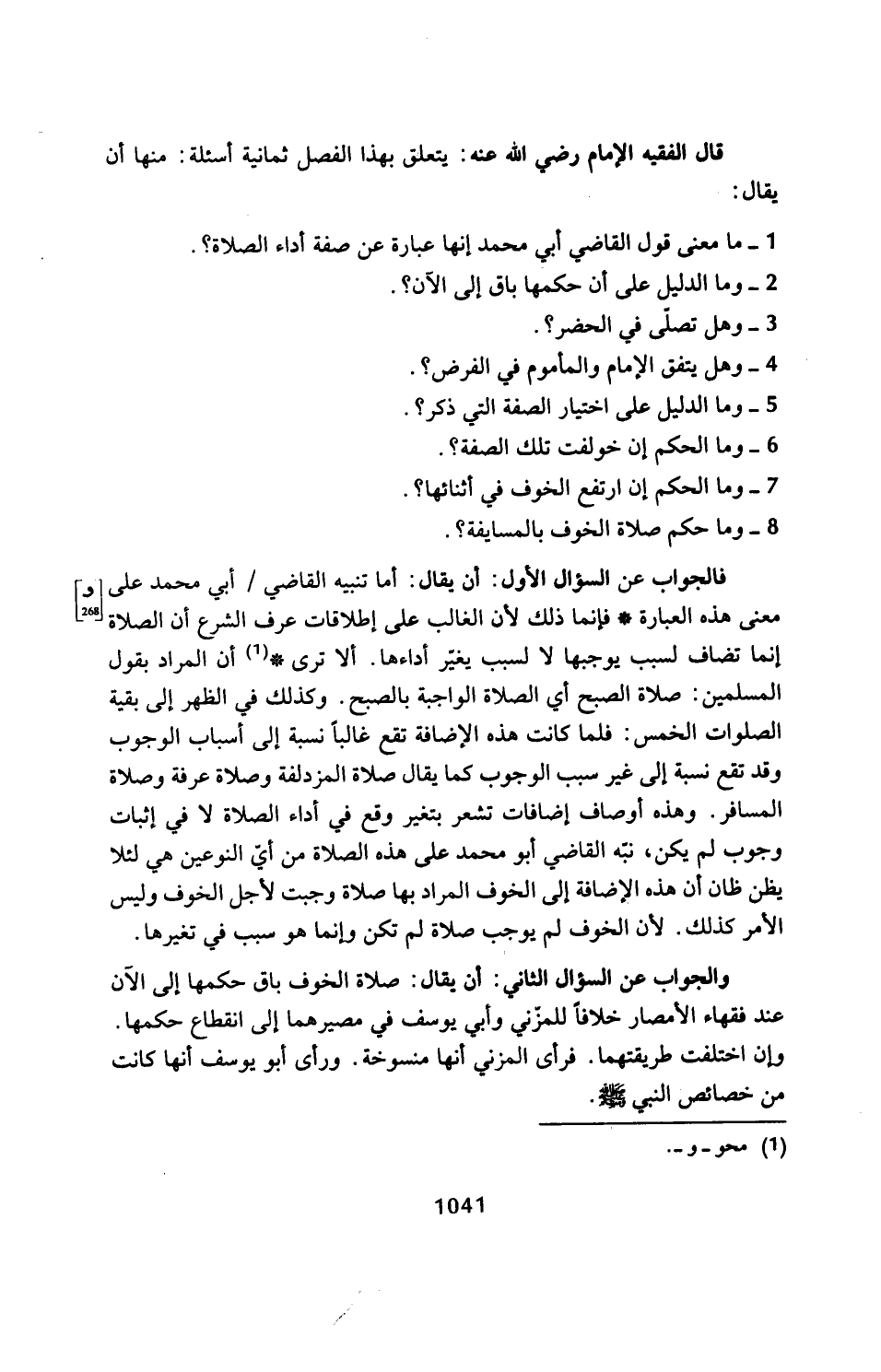 قال الفقيه الإِمام - رضي الله عنه -: يتعلق بهذا الفصل ثمانية أسئلة: منها أن يقال: