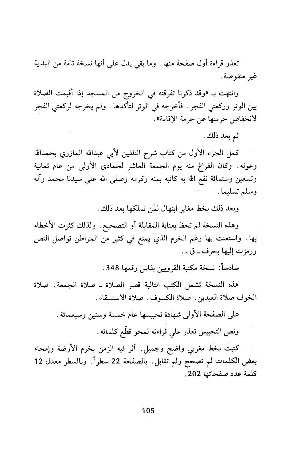 سادسًا: نسخة مكتبة القرويين بفاس رقمها 348.