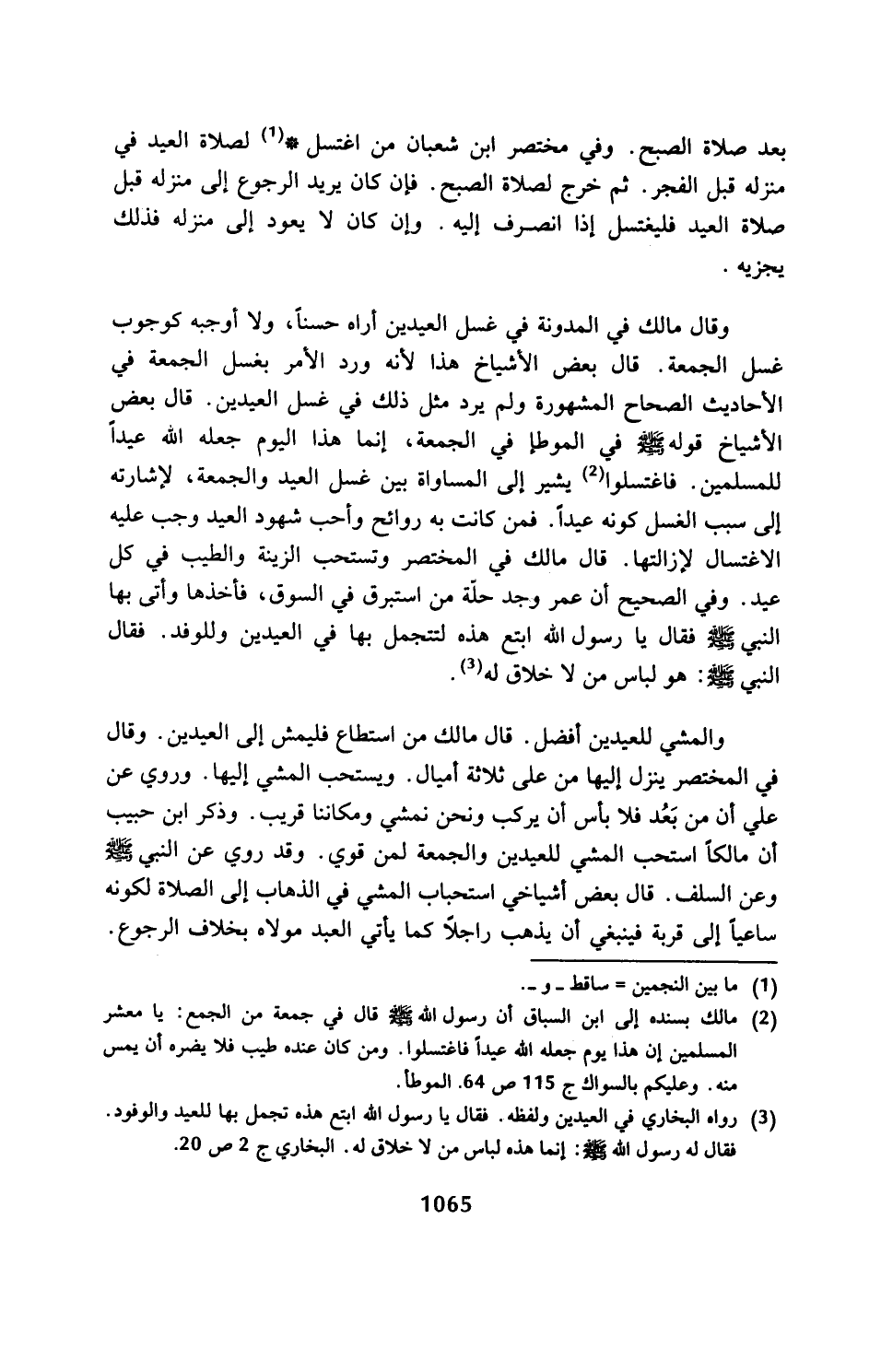 (¬2) مالك بسنده إلى ابن السباق أن رسول الله - صلى الله عليه وسلم - قال في جمعة من الجمع: يا معشر المسلمين إن هذا يوم جعله الله عيدًا فاغتسلوا. ومن كان عنده طيب فلا يضره أن يمس منه. وعليكم بالسواك ج 115 ص 64. الموطأ.