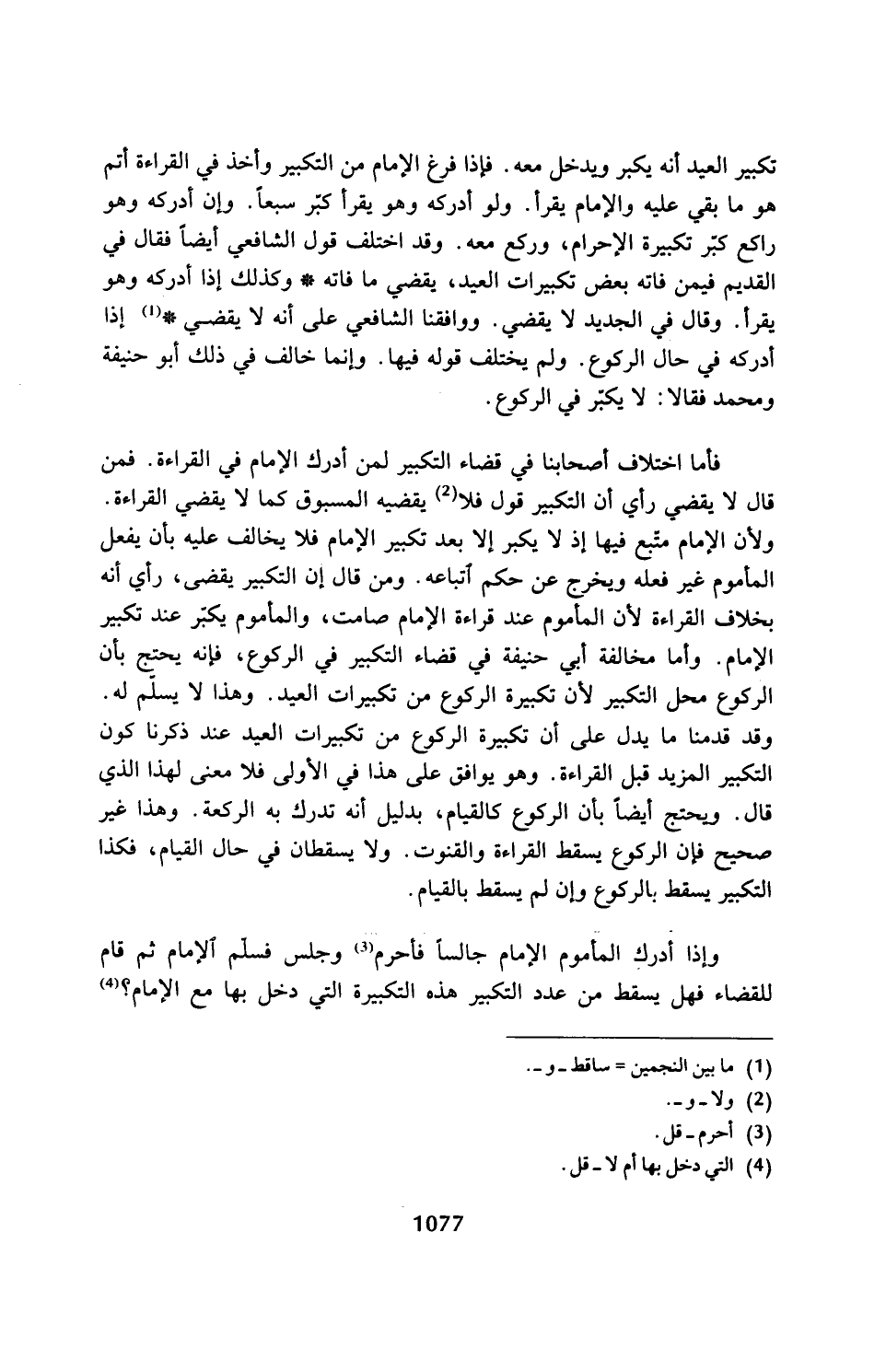 ولأن الإِمام متبع فيها إذ لا يكبر إلا بعد تكبير الإِمام فلا يخالف عليه بأن يفعل المأموم غير فعله ويخرج عن حكم اتباعه. ومن قال إن التكبير يقضى، رأي أنه بخلاف القراءة لأن المأموم عند قراءة الإِمام صامت، والمأموم يكبّر عند تكبير الإِمام. وأما مخالفة أبي حنيفة في قضاء التكبير في الركوع، فإنه يحتج بأن الركوع محل التكبير لأن تكبيرة الركوع من تكبيرات العيد. وهذا لا يسلّم له.