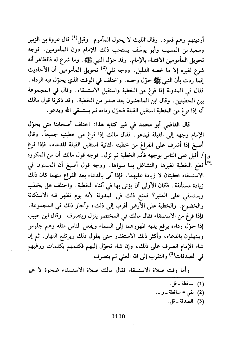 قال القاضي أبو محمَّد في غير كتابه هذا: اختلف أصحابنا متى يحوّل الإِمام وجهه إلى القبلة فيدعو. فقال مالك إذا فرغ من خطبتيه جميعًا. وقال أصبغ إذا أشرف على الفراغ من خطبته الثانية استقبل القبلة للدعاء، فإذا فرغ أقبل على الناس بوجهه فأتم الخطبة ثم نزل. فوجه قول مالك أن من المكروه قطع الخطبة لغيرها والتشاغل بما سواها. ووجه قول أصبغ أن المسنون في الاستسقاء خطبتان لا زيادة عليهما. فإذا أتى بالدعاء بعد الفراغ منهما كان ذلك زيادة مستأنفة. فكان الأولى أن يؤتى بها في أثناء الخطبة. واختلف هل يخطب ويستسقي على المنبر؟ فمنع ذلك في المدونة لأنه يوم تظهر فيه الاستكانة والخضوع. والخطبة على الأرض أقرب إلى ذلك، وأجاز ذلك في المجموعة. فإذا فرغ من الاستسقاء فقال مالك في المختصر ينزل وينصرف. وقال ابن حبيب إذا حوّل رداءه يرفع يديه ظهورهما إلى السماء ويفعل الناس مثله وهم جلوس ويبتهلون بالدعاء، وأكثر ذلك الاستغفار حتى يطول ذلك ويرتفع النهار. ثم إن شاء الإِمام انصرف على ذلك، وإن شاء تحوّل إليهم فكلمهم بكلمات ورغبهم في الصدقات (¬3) والتقرب إلى الله العلي ثم ينصرف.