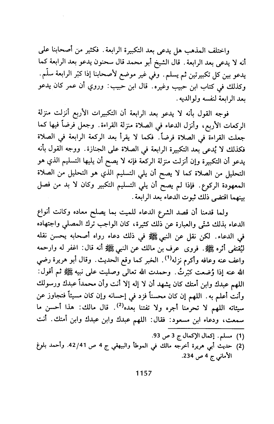 واختلف المذهب هل يدعى بعد التكبيرة الرابعة. فكثير من أصحابنا على أنه لا يدعى بعد الرابعة. قال الشيخ أبو محمَّد قال سحنون يدعو بعد الرابعة كما يدعو بين كل تكبيرتين ثم يسلم. وفي غير موضع لأصحابنا إذا كبّر الرابعة سلّم.