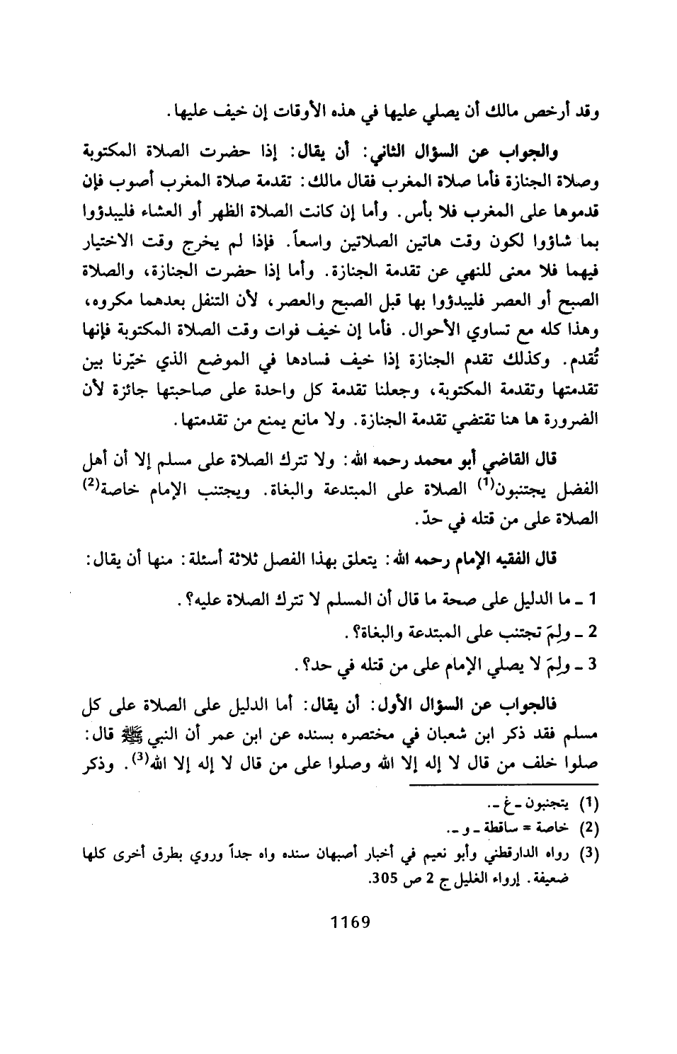 قال الفقيه الإِمام رحمه الله: يتعلق بهذا الفصل ثلاثة أسئلة: منها أن يقال: