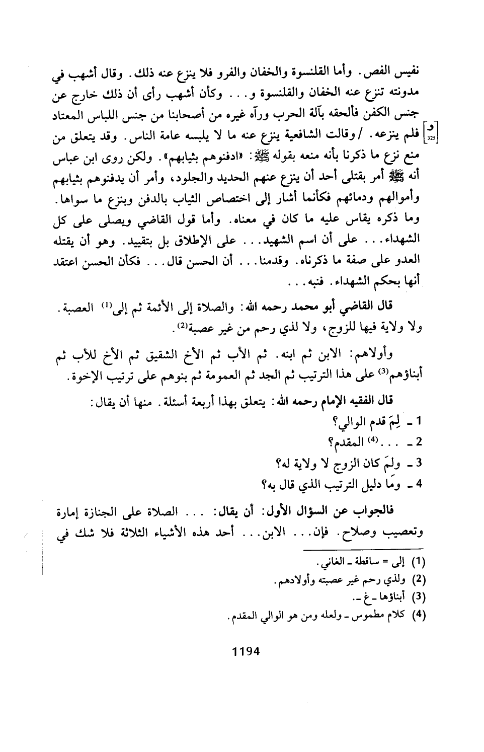 قال الفقيه الإِمام رحمه الله: يتعلق بهذا أربعة أسئلة. منها أن يقال: