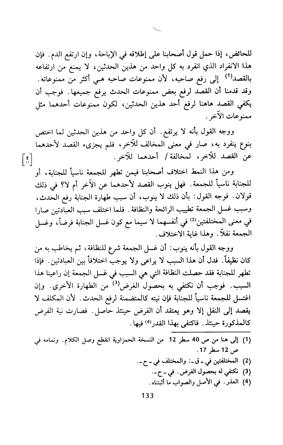 (¬4) العذر. في الأصل والصواب ما أثبتناه.