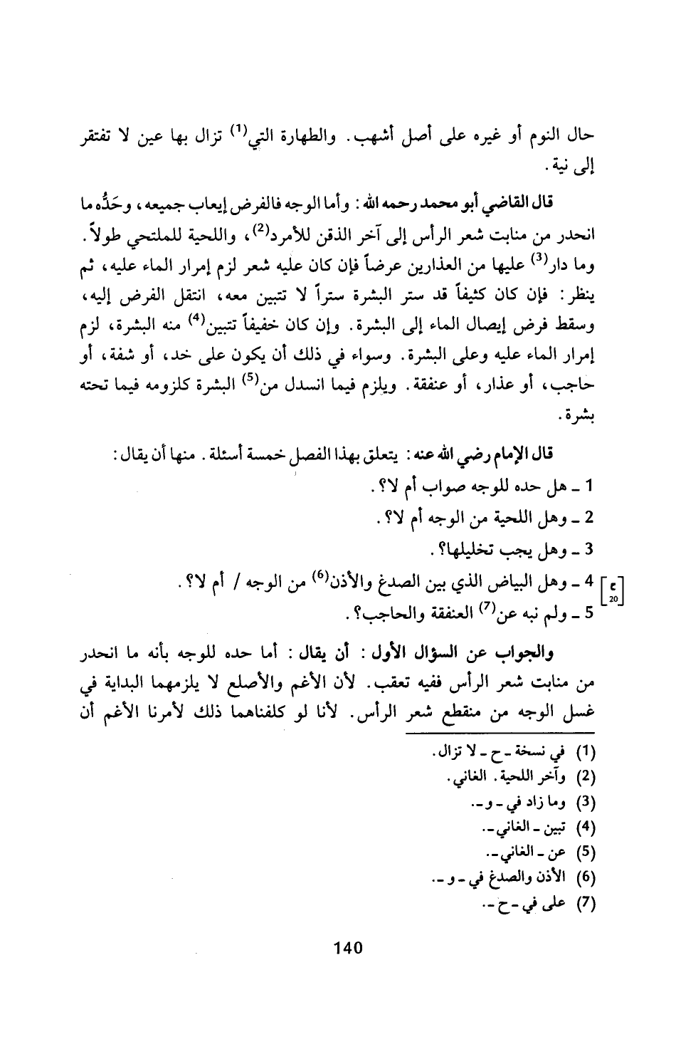 قال الإِمام رضي الله عنه: يتعلق بهذا الفصل خمسة أسئلة. منها أن يقال: