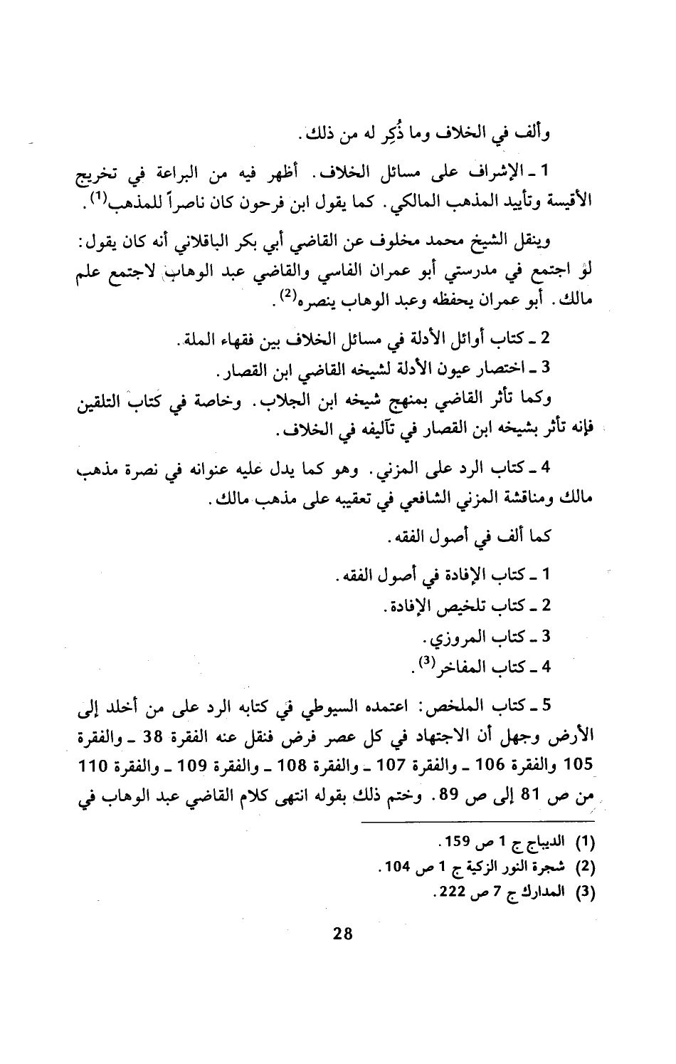 5 - كتاب الملخص: اعتمده السيوطي في كتابه الرد على من أخلد إلى الأرض وجهل أن الاجتهاد في كل عصر فرض فنقل عنه الفقرة 38 - والفقرة 105 والفقرة 106 - والفقرة 107 - والفقرة 108 - والفقرة 109 - والفقرة 110 مِن ص 81 إلى ص 89. وختم ذلك بقوله انتهى كلام القاضي عبد الوهاب في