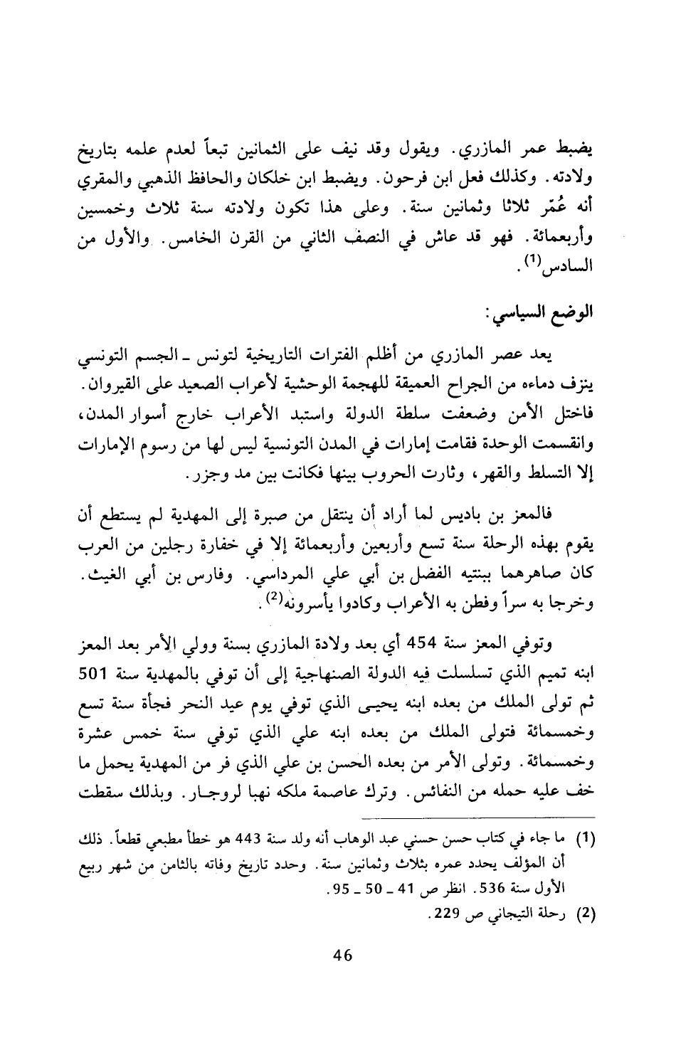 (¬1) ما جاء في كتاب حسن حسني عبد الوهاب أنه ولد سنة 443 هو خطًا مطبعي قطعًا. ذلك أن المؤلف يحدد عمره بثلاث وثمانين سنة. وحدد تاريخ وفاته بالثامن من شهر ربيع الأول سنة 536. انظر ص 41 - 50 - 95.