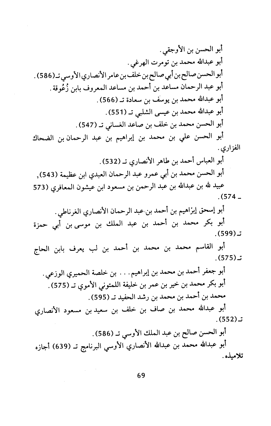 أبو عبد الله محمَّد بن عبد الله الأنصاري الأوسي البرنامج تـ (639) أجازه تلاميذه.