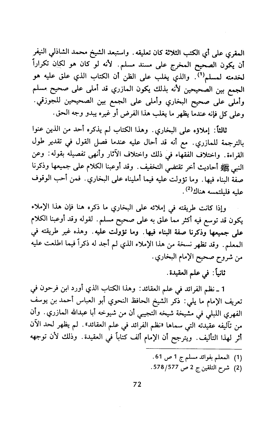 (¬1) المعلم بفوائد مسلم ج 1ص 61.