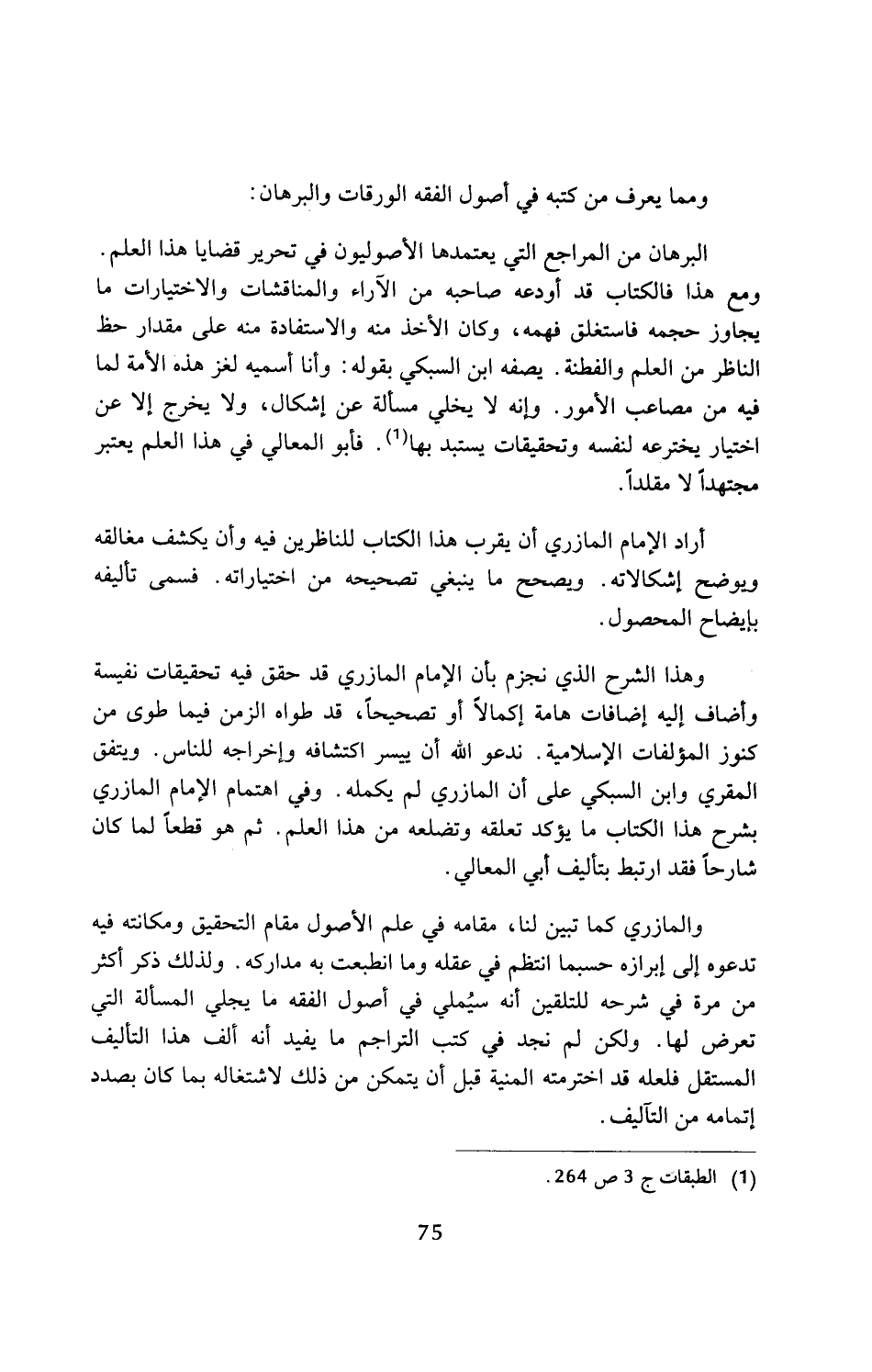 وهذا الشرح الذي نجزم بان الإِمام المازري قد حقق فيه تحقيقات نفيسة وأضاف إليه إضافات هامة إكمالاً أو تصحيحاً، قد طواه الزمن فيما طوى من كنوز المؤلفات الإِسلامية. ندعو الله أن ييسر اكتشافه وإخراجه للناس. ويتفق المقري وابن السبكي على أن المازري لم يكمله. وفي اهتمام الإِمام المازري بشرح هذا الكتاب ما يؤكد تعلقه وتضلعه من هذا العلم. ثم هو قطعًا لما كان