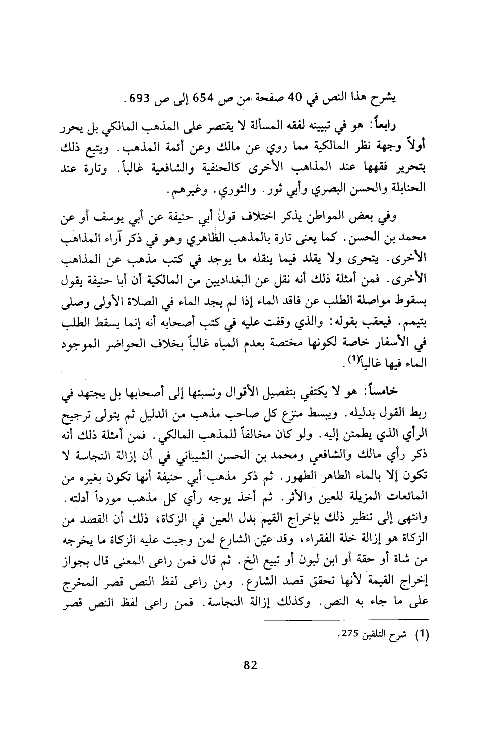 رابعًا: هو في تبيينه لفقه المسألة لا يقتصر على المذهب المالكي بل يحرر أولًا وجهة نظر المالكية مما روي عن مالك وعن أئمة المذهب. ويتبع ذلك بتحرير فقهها عند المذاهب الأخرى كالحنفية والشافعية غالبًا. وتارة عند الحنابلة والحسن البصري وأبي ثور. والثوري. وغيرهم.