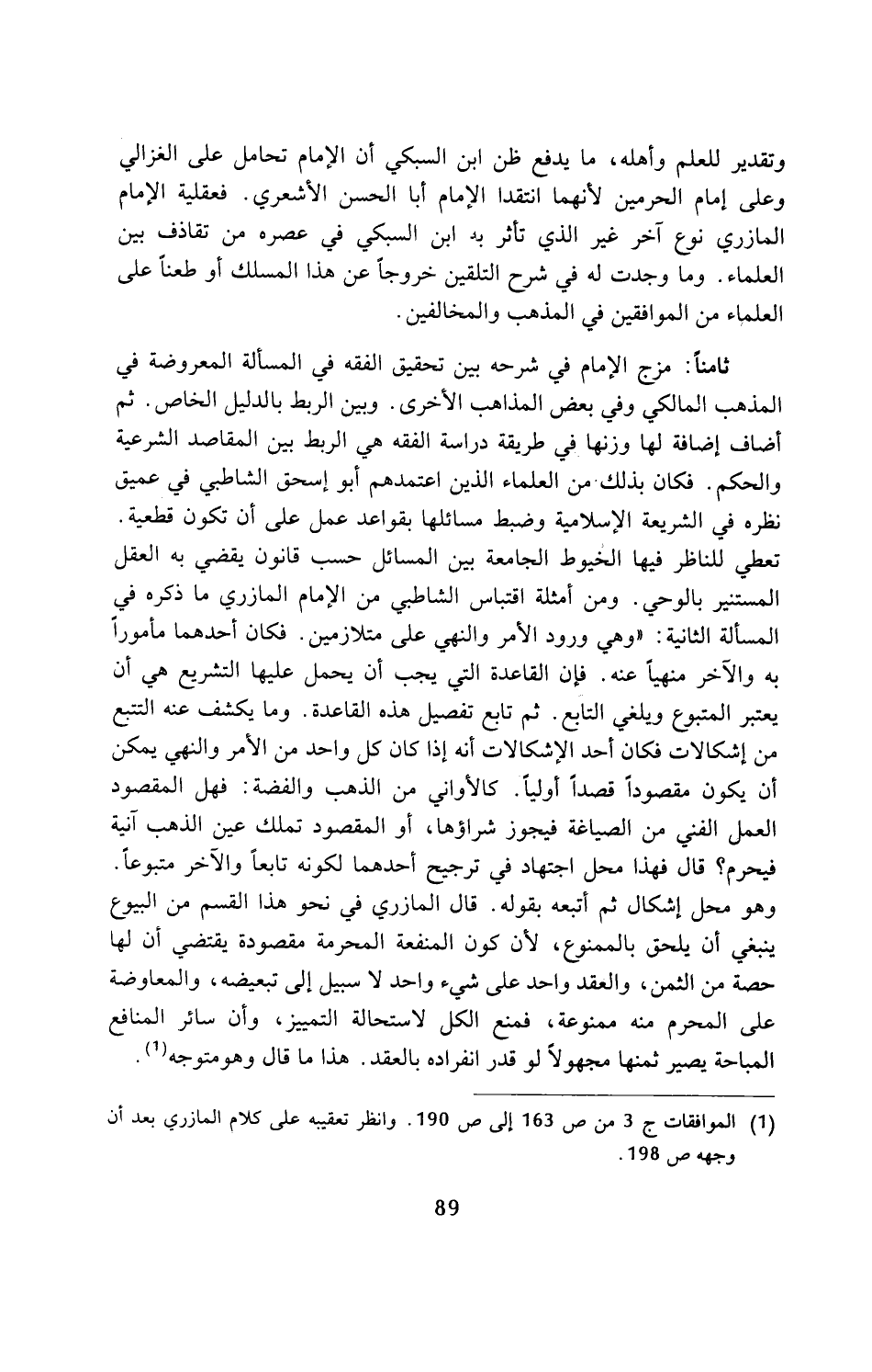 (¬1) الموافقات ج 3 من ص 163 إلى ص 195. وانظر تعقيبه على كلام المازري بعد أن