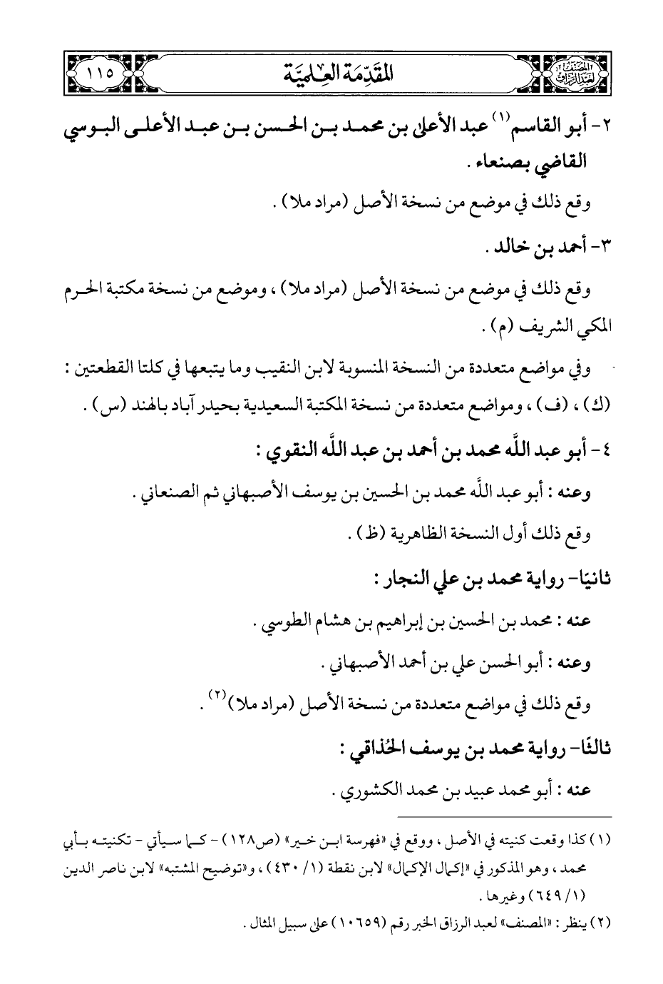(¬٢) ينظر: "المصنف" لعبد الرزاق الخبر رقم (١٠٦٥٩) علي سبيل المثال.
