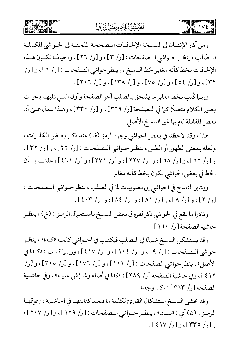 ويشير الناسخ في الحواشي إلى تصويبات لما في الصلب، ينظر حواشي الصفحات: [ر/ ٢]، و [ر/ ١٨] و [ر/ ٨١]، و [ر/ ٨٤]، و [ر / ٤٠٣].
