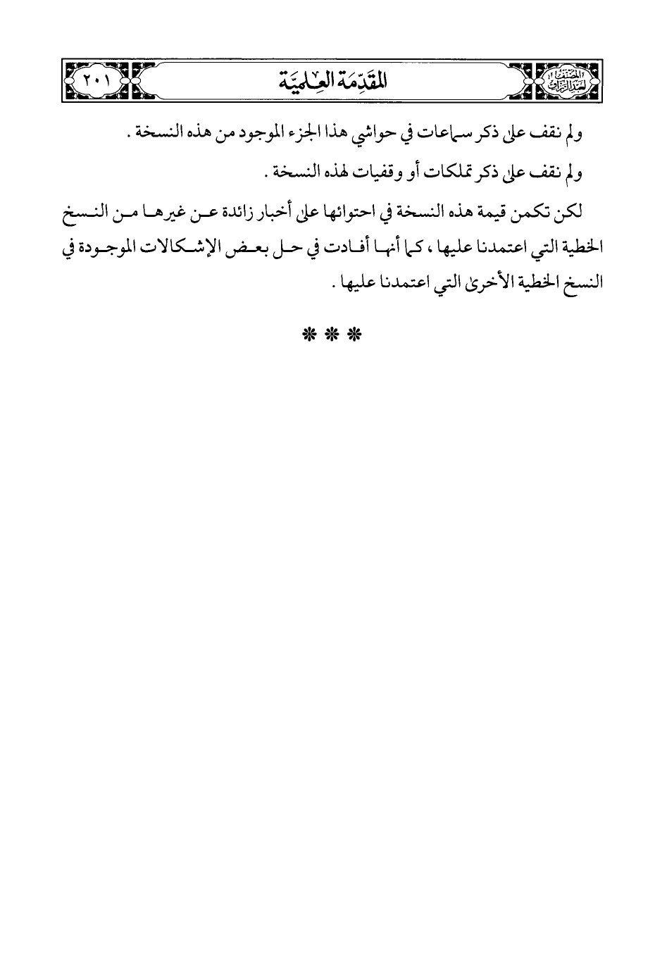 لكن تكمن قيمة هذه النسخة في احتوائها على أخبار زائدة عن غيرها من النسخ الخطية التي اعتمدنا عليها، كما أنها أفادت في حل بعض الإشكالات الموجودة في النسخ الخطية الأخرى التي اعتمدنا عليها.
