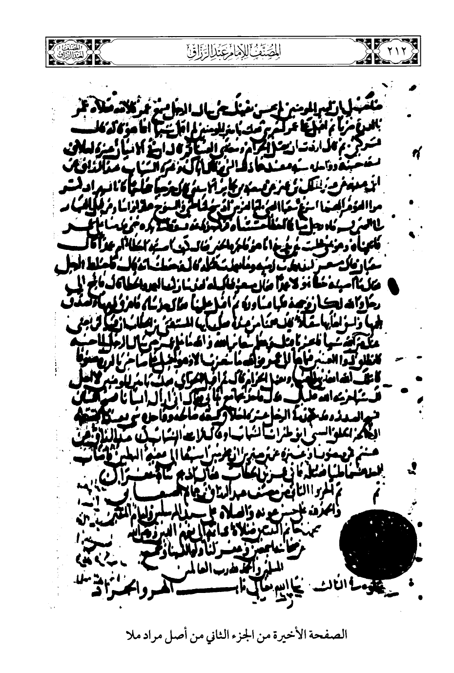 الصفحة الأخيرة من الجزء الثاني من أصل مراد ملا