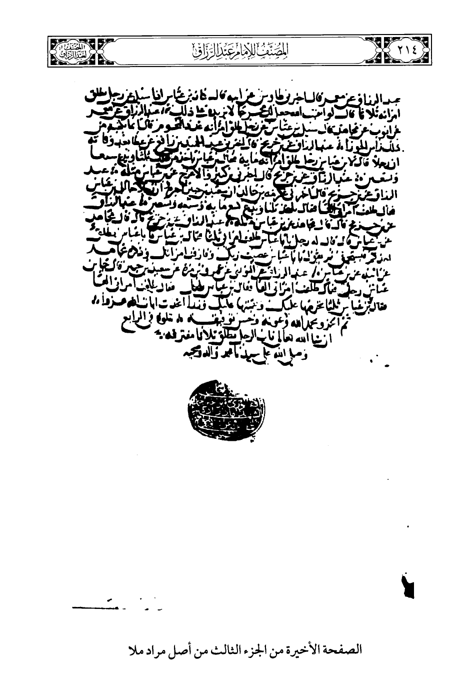 الصفحة الأخيرة من الجزء الثالث من أصل مراد ملا