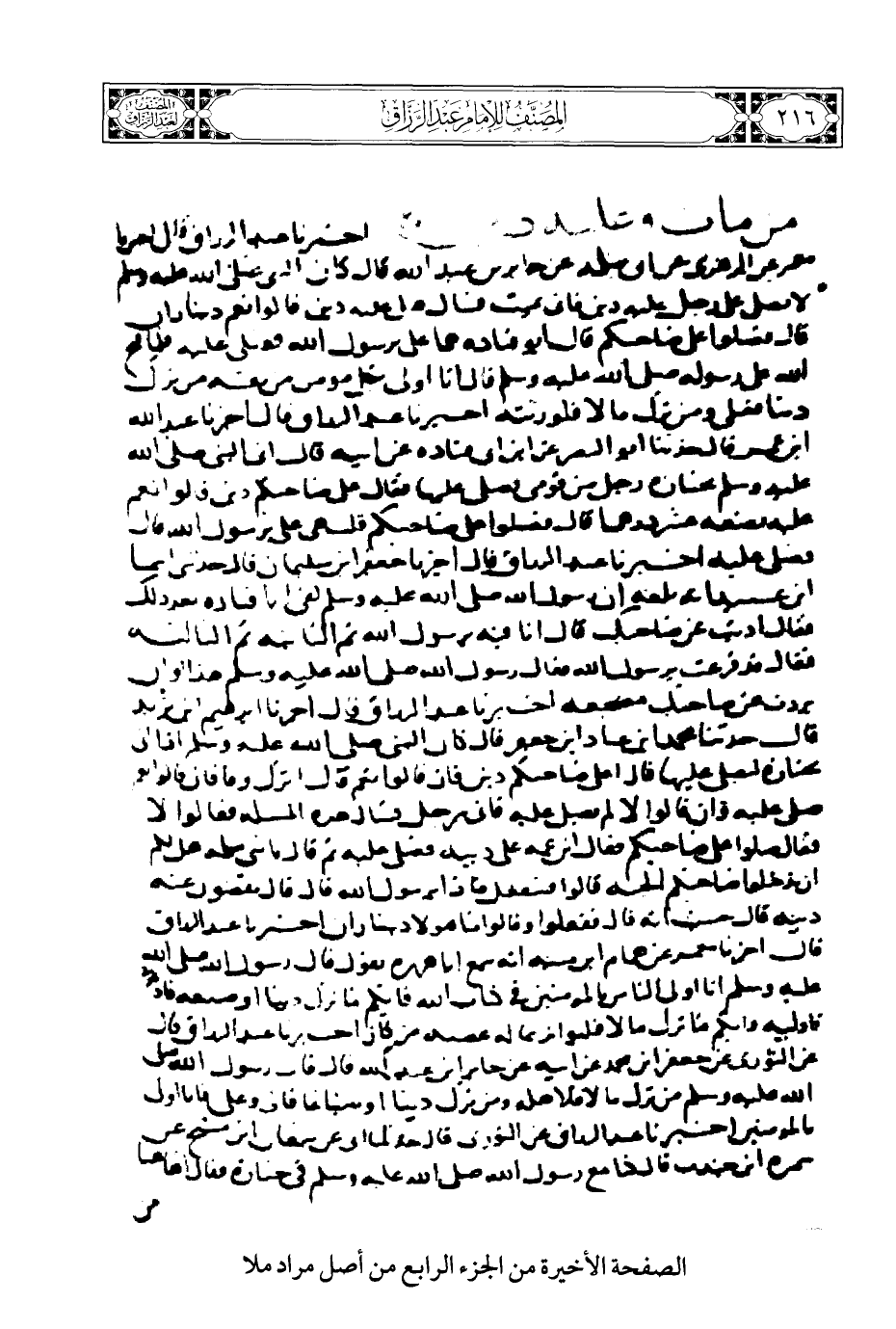 الصفحة الأخيرة من الجزء الرابع من أصل مراد ملا
