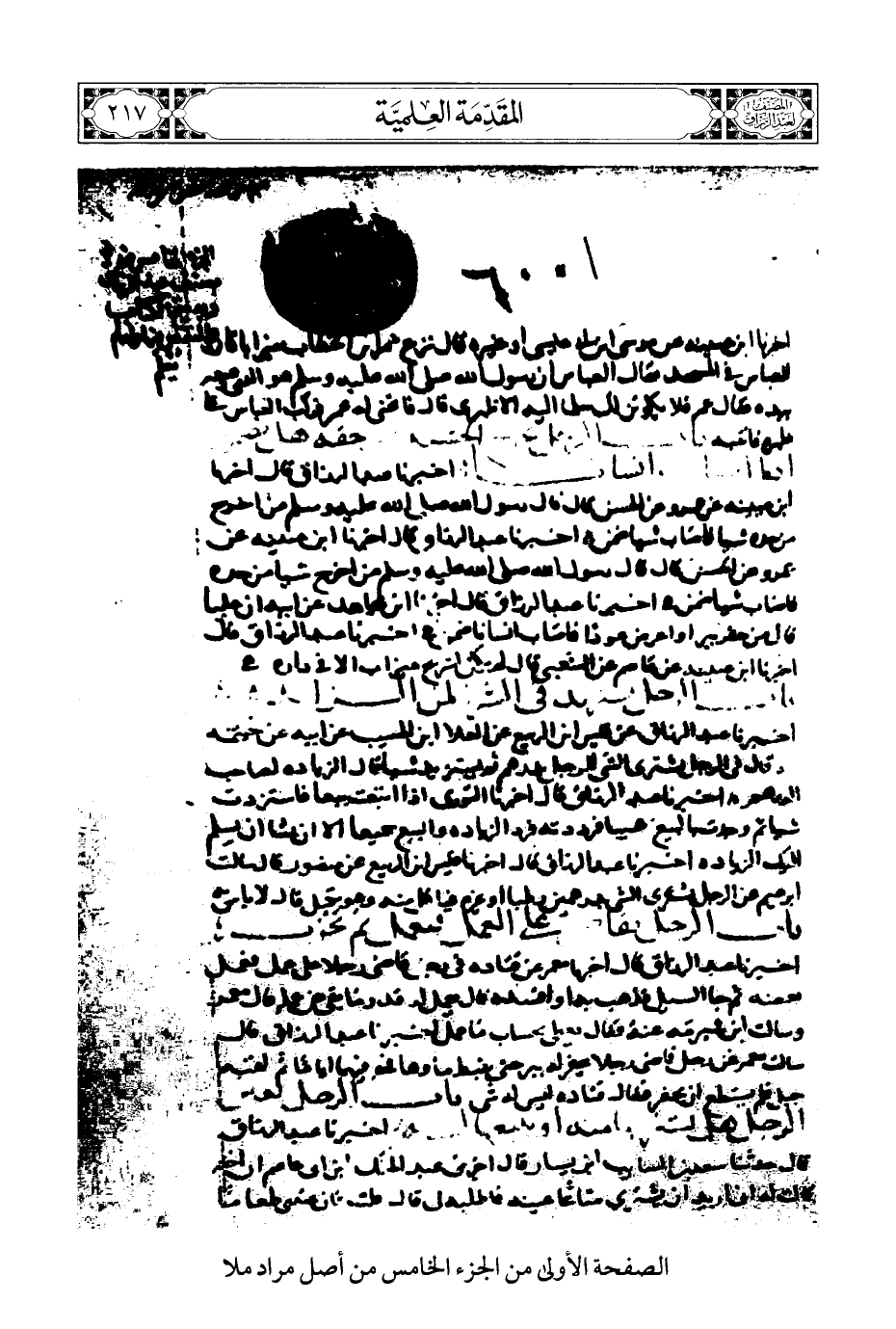 الصفحة الأولى من الجزء الخامس من أصل مراد ملا