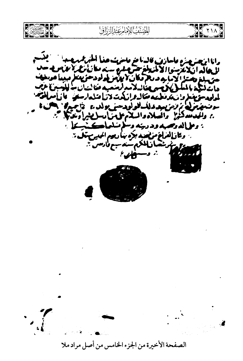 الصفحة الأخيرة من الجزء الخامس من أصل مراد ملا