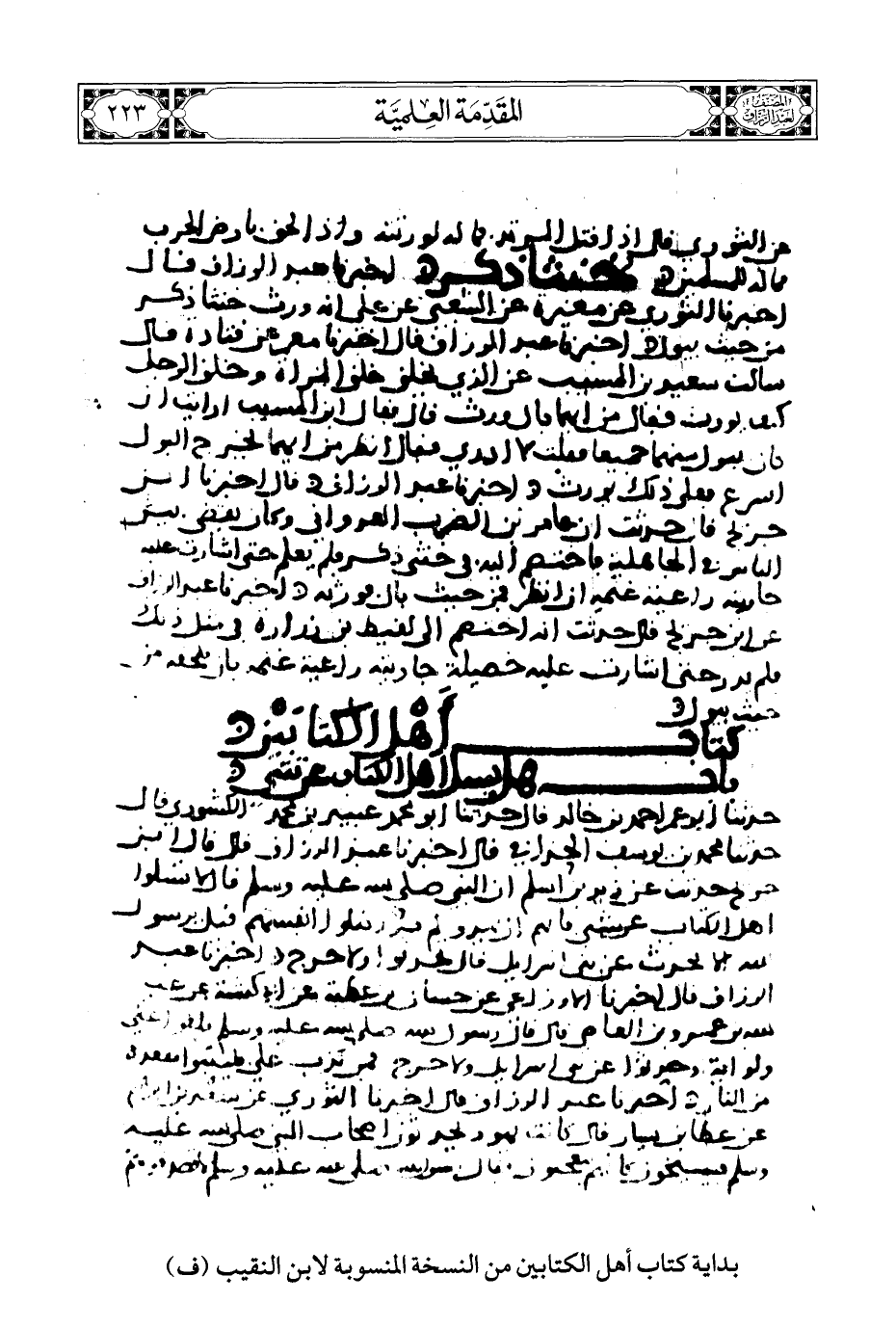 بداية كتاب أهل الكتابين من النسخة المنسوبة لابن النقيب (ف)