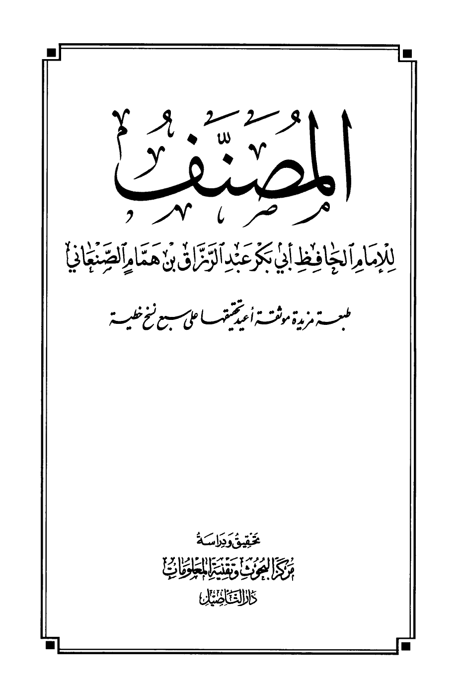 كتاب مصنف عبد الرزاق - ط التأصيل الثانية (اسم الجزء: 1)