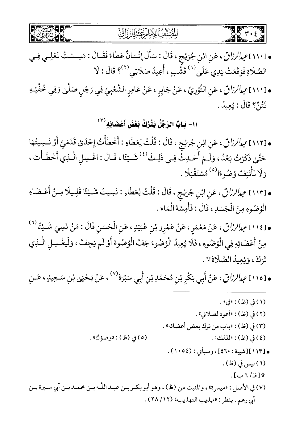 • [١١٤] عبد الرزاق، عَنْ مَعْمَرٍ، عَنْ عَمْرِو بْنِ عُبَيْدٍ، عَنِ الْحَسَنِ قَالَ: مَنْ نَسِيَ شَيْئًا (¬٦) مِنْ أَعْضَائِهِ فِي الْوُضوءِ، فَلَا يُعِيدُ الْوُضُوءَ جَفَّ الْوُضُوءُ أَوْ لَمْ يَجِفَّ، وَلْيَغْسِلِ الَّذِي تَرَكَ، وَيُعِيدُ الصَّلَاةَ *.