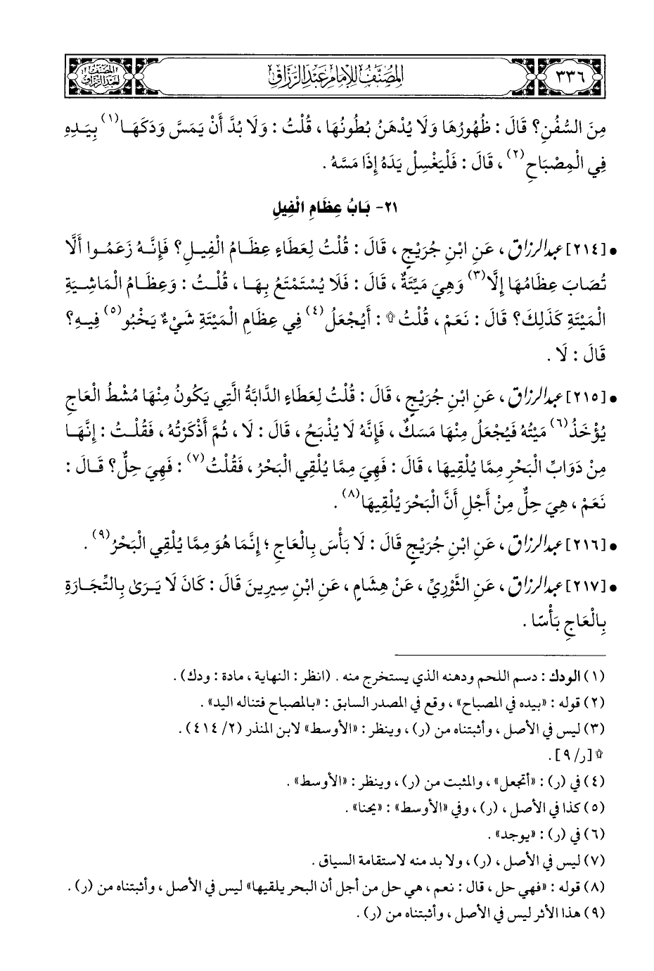 • [٢١٦] عَبْدُ الرَّزَّاقِ، عَنِ ابْنِ جُرَيْجٍ قَالَ: لَا بَأْسَ بِالْعَاجِ؛ إِنمَا هُوَ مِمَّا يُلْقِي الْبَحْرُ (¬٩).